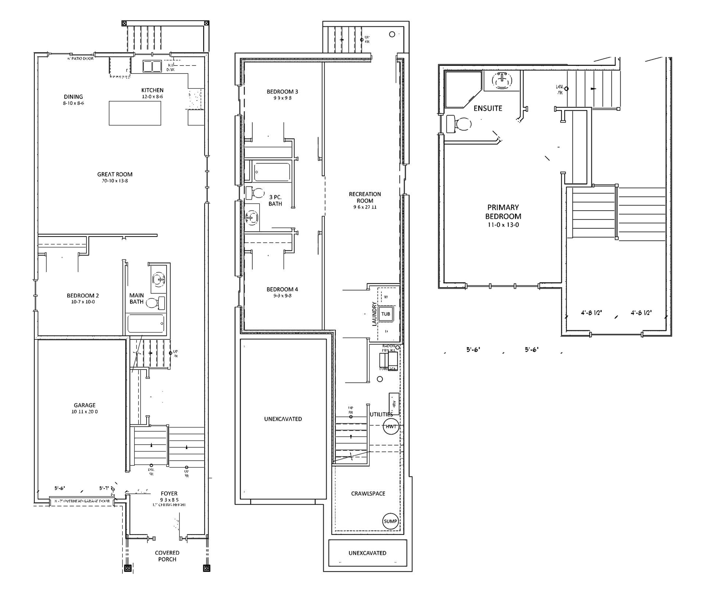 - Laminate or Vinyl: Basement floor (where applicable), basement subfloor upgrade available for additional warmth